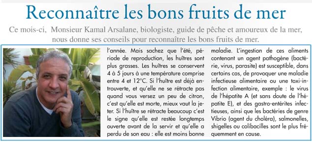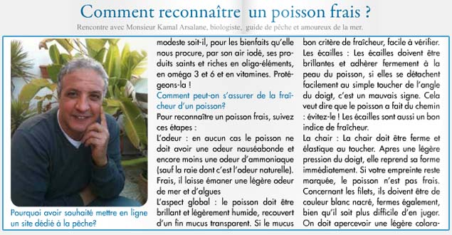 Entrevue avec Mr Kamal ARSALANE, consultant en pêche sportive, produits de la mer, sorties pédagogiques auprès des écoles « Découverte du milieu aquatique :